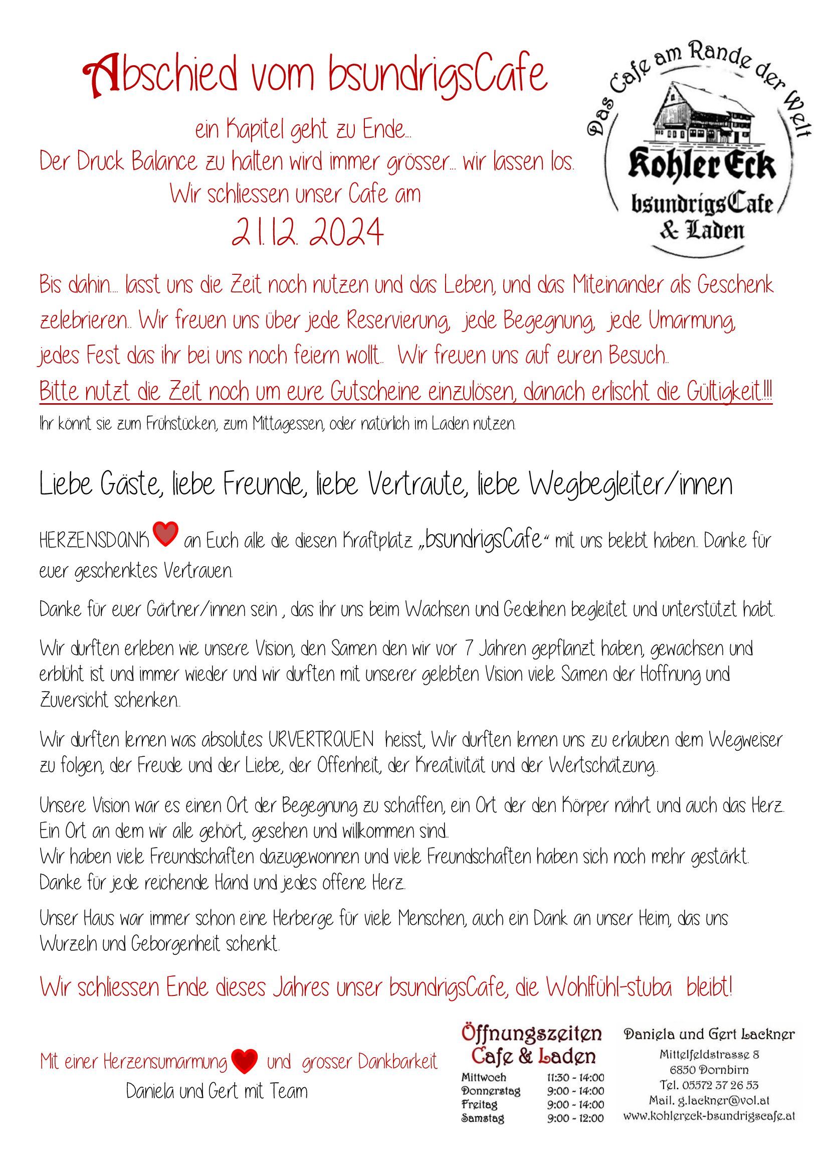 Kuchen, Gipfele, Kaffee, ein gutes Gläschen oder doch eine italienische Jause, Toast, Salat oder was anderes