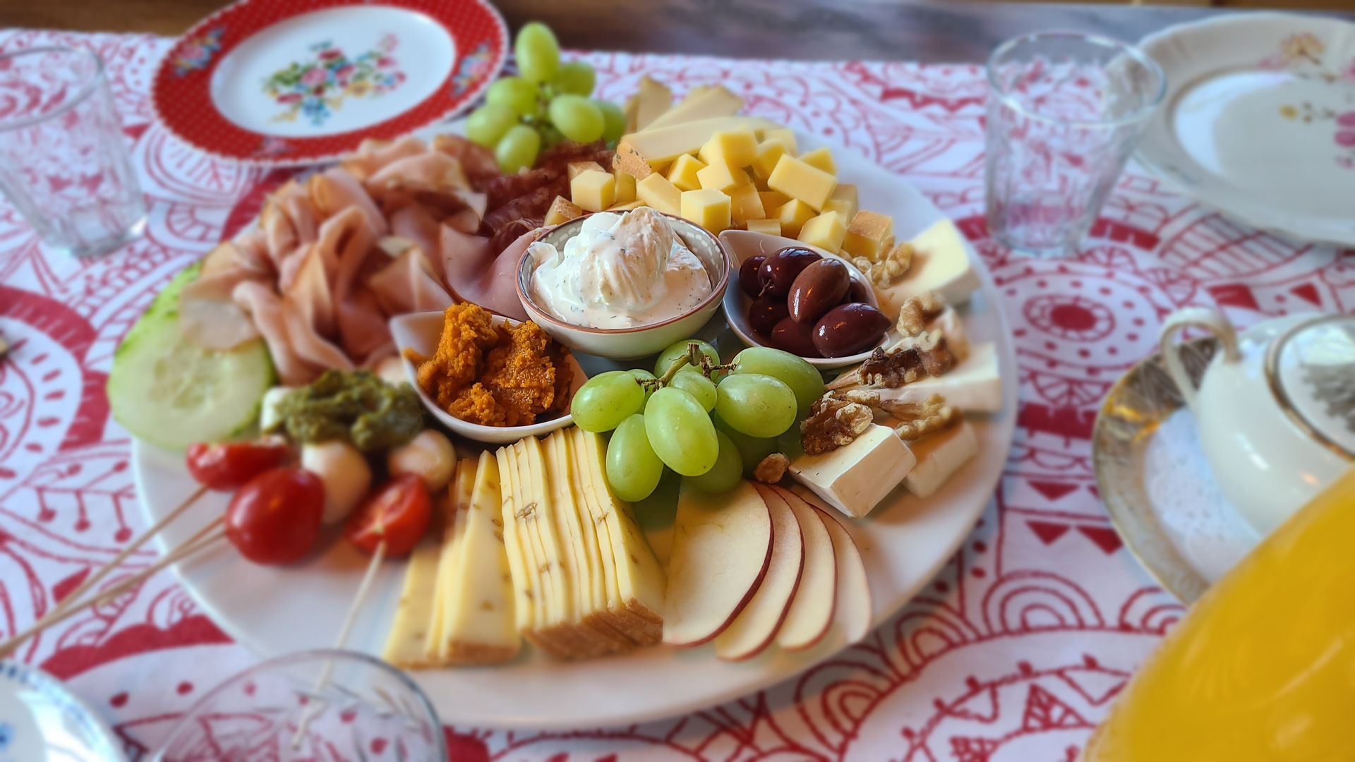 Bei uns gibt es ein gutes Frühstück mit Schinken, Salami, Käse und Ei.....